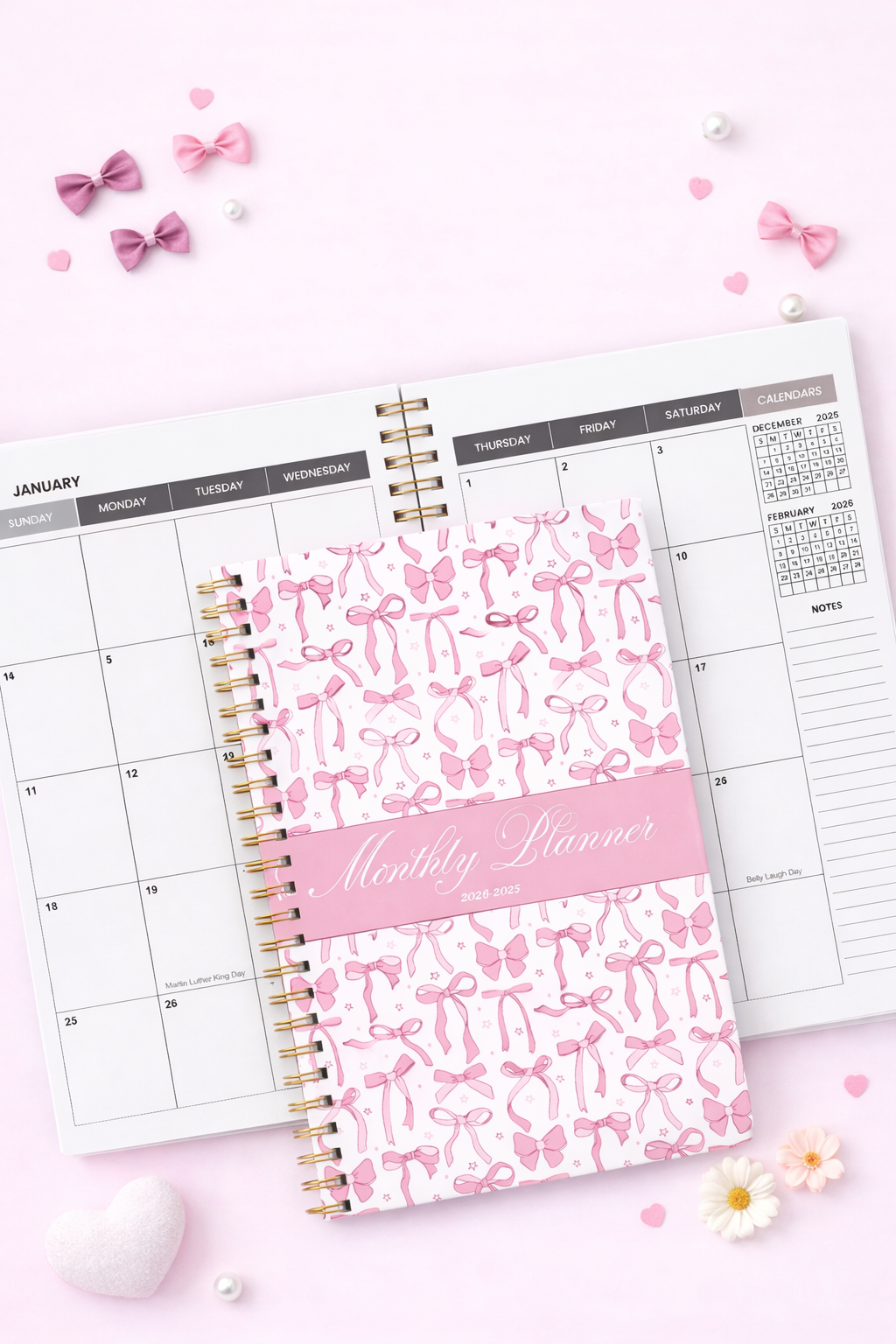 Stay organised in the cutest way possible. Our Sweet Bow Monthly Planner brings soft coquette charm to your schedule, with delicate bow details throughout that make planning feel joyful instead of stressful.