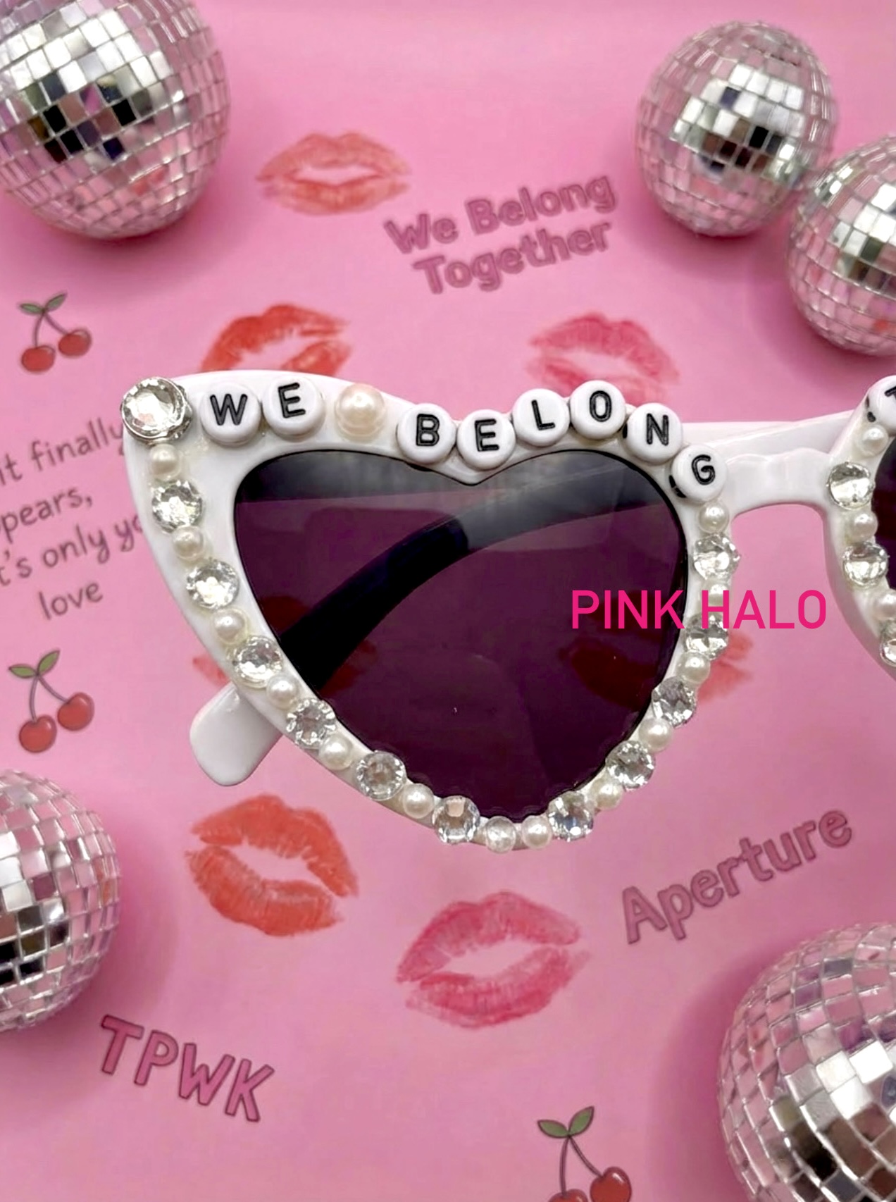 Each pair is handmade and hand-bedazzled, featuring statement rhinestones, pearl detailing, and the iconic “We Belong Together” lettering across the frames. Designed to catch the light, they’re perfect for dancing all night at Harry’s tour, singing every lyric, and living your best life.